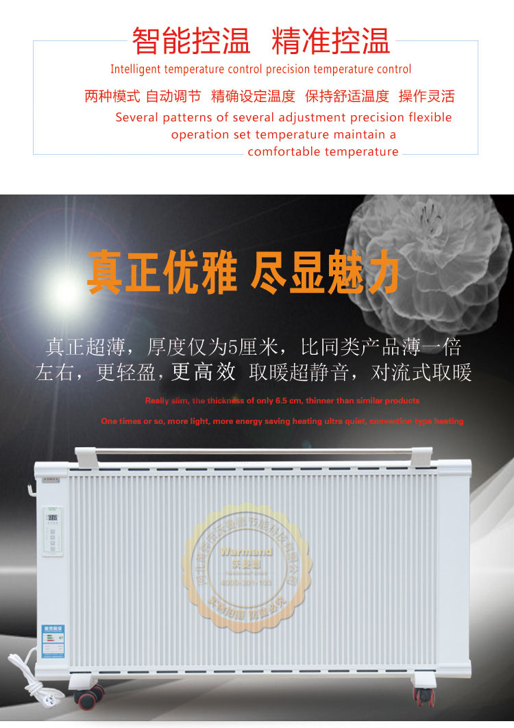 沃曼德碳晶電曖器,分為壁掛式、地暖式,功率從900-1500W,造型美觀大方、結(jié)構(gòu)堅(jiān)固耐用,