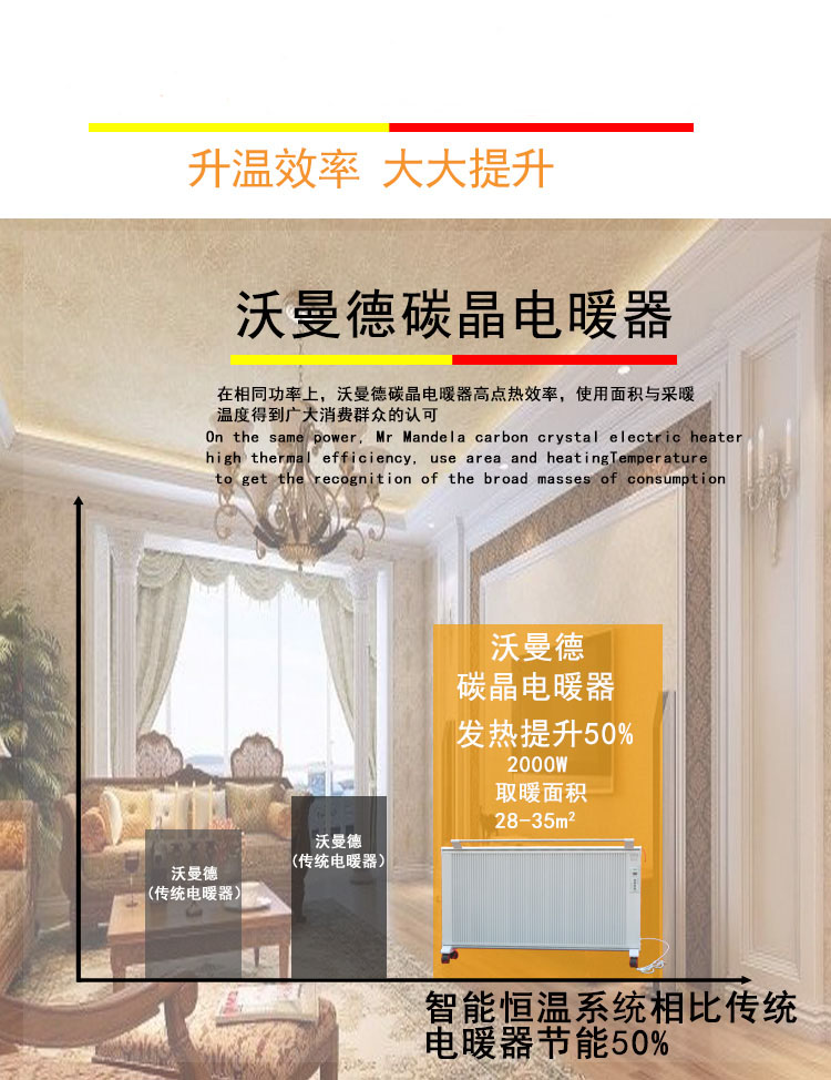 堅固耐用,不易損壞,使用壽命長達20-30年。產(chǎn)品的零部件和整機均經(jīng)嚴格篩選、老化和檢測,導電強度超過國家標準2000V,其碳晶加熱體經(jīng)高壓復合而成,本產(chǎn)品重量輕、無污染、結(jié)構(gòu)堅固、使用壽命不低于10萬小時。設有三層溫控 。1發(fā)熱體設有超溫保護開關(guān)。2溫控器設有散熱體保護關(guān)3室溫調(diào)節(jié)開關(guān)可設定取暖溫度的恒溫狀態(tài)。耐電擊強度3000伏以上。絕無磁波輻射。