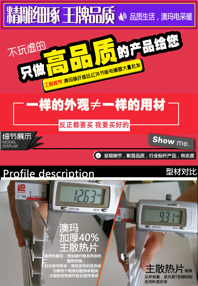 電采暖市場質(zhì)量和價格參差不齊,批發(fā)已經(jīng)進(jìn)入微利時代,但是有的電暖器價格和質(zhì)量相差懸殊其中主要的原因是技術(shù)研發(fā)的不同,產(chǎn)品的原材料采購和技術(shù)含量的不同,引領(lǐng)者不同消費群體的購買。我們澳瑪電器主要以提高產(chǎn)品質(zhì)量是第一位,所以作為大品牌的澳瑪品牌,不斷研發(fā)新產(chǎn)品