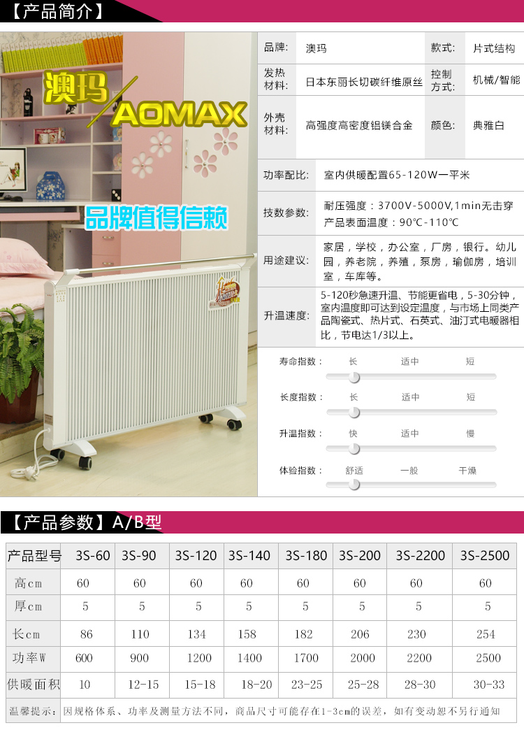 5.超大發(fā)熱量 在寒冷的冬季同類規(guī)格功率發(fā)熱量更大。