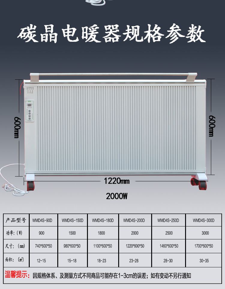 碳晶電暖器具有體積小重量輕、造型美觀大方、結(jié)構(gòu)堅(jiān)固耐用,無(wú)需增加任何配件,可隨意變換移動(dòng)使用位置等特點(diǎn)。發(fā)熱體,可隨意移動(dòng),任意放置,且可隨意攜帶,是家用采暖的創(chuàng)舉。